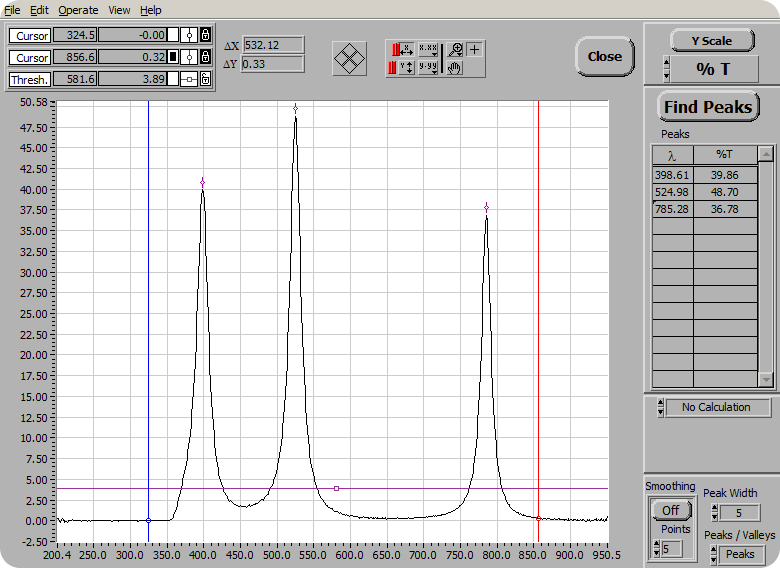 Software OptionsA comprehensive list of features are included and compatible with all 400 Series spectrophotometers. Standard features include Quantitative Analysis, Kinetics, Timed Acquisition, Peak Find Colorimetry and Radiometry features.